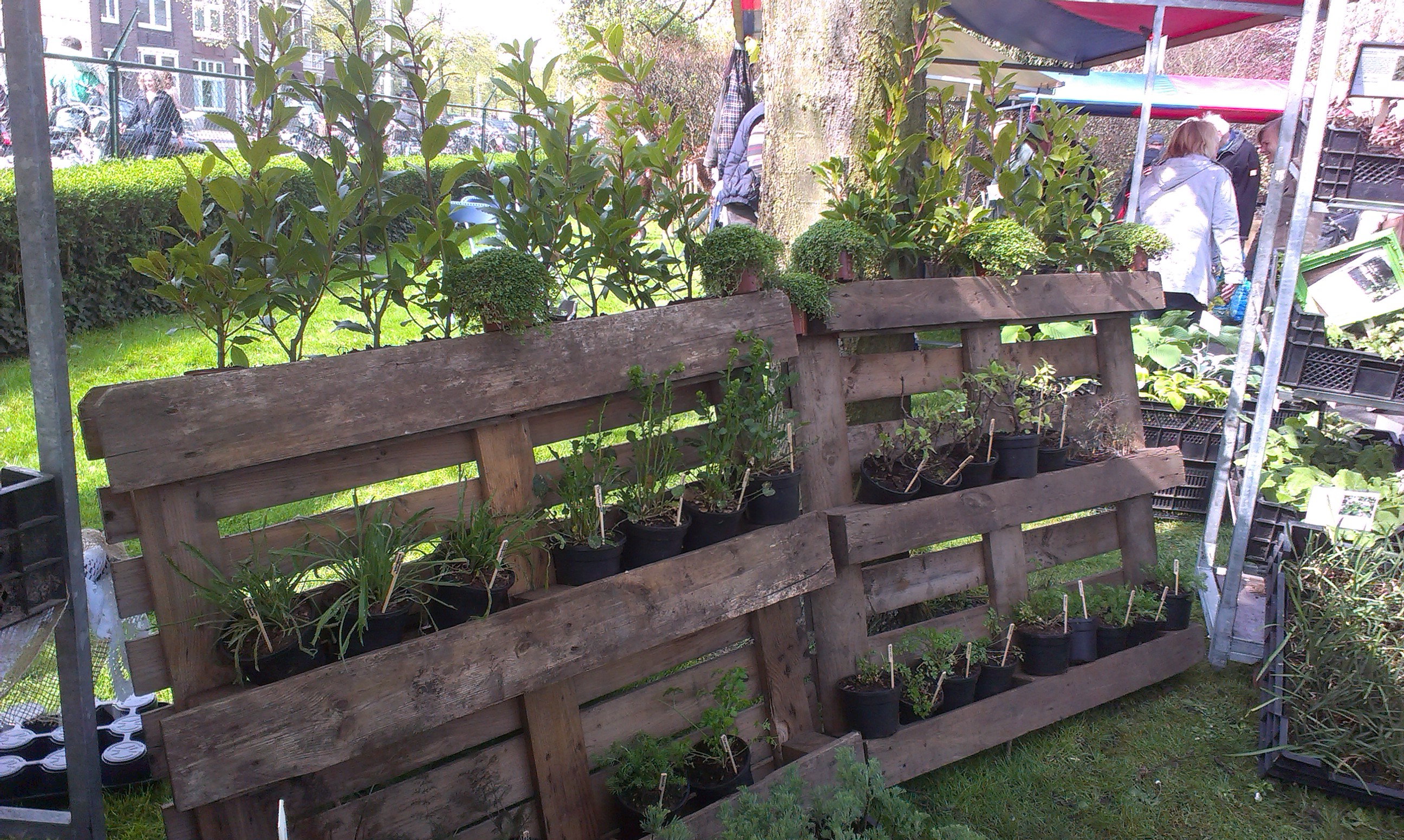 Dit leuke idee kwam ik tegen op de plantenmarkt in de stadskweektuin van Haarlem. Zo neergezet, niet duur en het ziet er nog leuk uit ook!