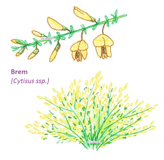 De brem (Cytisus) groeit in Nederland in het wild. Het is een struik, die ongeveer 60 cm – 2 m hoog wordt. Hij bloeit in mei/juni met veel felgele bloemen, waarmee de plant duidelijk te herkennen is als vlinderbloemige. Tijdens de bloei is het een prachtige struik, waar ik echt vrolijk van kan worden. De rest van het jaar is het een minder opvallende struik, maar wel een nuttige stikstoffixeerder.