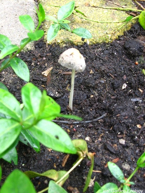 Veruit de meeste paddenstoelen in de tuin vallen onder deze categorie. Het zijn zwammen die dood hout en ander moeilijk afbreekbaar materiaal verteren en het zo weer geschikt maken voor opname door planten. Ze vormen geen bedreiging voor levende bomen/planten, maar zijn dus zelfs heel nuttig. En met het afbreken en weer beschikbaar maken van voedingsstoffen zijn ze (bijna?) net zo belangrijk als mycorrhiza voor gezonde bomen en heesters. Een voorbeeld zijn de paddenstoelen in de afbeelding hiernaast. Mijn ervaring is dat deze soort (geen idee hoe hij heet trouwens) vaak opduikt als er recent bemest is en de voedingsstoffen dus nog vrij ‘scherp’ zijn. Paddenstoelen (vooral heksenkringen) in het gazon zijn meestal ook het gevolg van bemesting, in dit geval vaak een verkeerde of te eenzijdige bemesting.