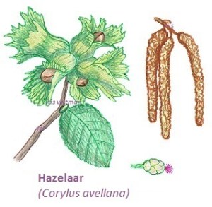 Noten zijn rijk aan eiwitten, koolhydraten en onverzadigde vetten. Een winst dus als je ze kan kweken in je eigen tuin. Nu worden de meeste noten die het in ons klimaat goed doen (walnoot, beuk, tamme kastanje, pecannoot, (eikels^)) grote bomen en is het merendeel niet zelfbestuivend. Daarom kies ik sneller voor de hazelaar. Het wordt weliswaar alsnog een flinke struik (reken zeker wel op een diameter van 3 meter en ze kunnen 3-4 meter hoog worden) en in mijn ervaring zijn ook de zelfbestuivende rassen niet echt zelfbestuivend, waardoor je er alsnog het beste twee neerzet. Hazelaars hebben namelijk mannelijke en vrouwelijke bloemen, die normaal niet tegelijkertijd bloeien om zelfbestuiving te voorkomen. Zelf heb ik toevallig één van die zogenaamde ‘zelfbestuivende’ rassen (‘Webb’s prize cob’) maar die heb ik nog nooit met beide bloemen tegelijk gezien (gelukkig staat hij pal naast ‘Cosford’ met iets meer dan 1,5 m ertussen, dus dat is verder geen probleem). Het voordeel van hazelnoten is dat ze minder groot worden dan die andere soorten, waardoor je ze makkelijker in een stadstuin zet zonder je buren voor het hoofd te stoten. Ze hebben genoeg aan halfschaduw. Hazelnoten zijn een goede bron van eiwitten en koolhydraten (respectievelijk 14,2 gram en 10,6 gram per 100 gram hazelnoten).