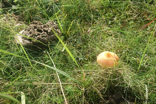 Deze lukte ook nog: afgeplatte stuifzwam, een saprofiet/saprofyt (recycler van dood materiaal) die veel voorkomt op bemest of onbemeste graslanden – gezien dit een plek was waar schapen grazen niet verrassend.