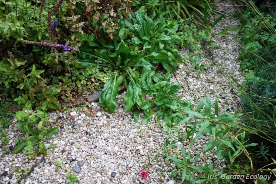 Sterker nog, op het grind was geen enkele plas te bekennen. Dat is het voordeel van halfverhardingen, zoals grind of speciale tegels – het laat water door. Maar: groen wint. Want het vangt het water op zodat het vertraagt (en de bodem niet alles in één keer voor zijn kiezen krijgt), het evaporeert vanaf de bladeren waardoor de bodem minder hoeft te verwerken, de wortels beschermen de bodem tegen erosie en houden hem luchtiger, waardoor water beter kan infiltreren en natuurlijk slurpen de wortels een deel op. Groen is een spons, (half)verhardingen niet. En dus is er in mijn groene voor- en achtertuin met dit soort buien niet zo veel te merken van de wilde waterstromen in de ruimten eromheen – alleen de dikke druppels op je kop 😉
