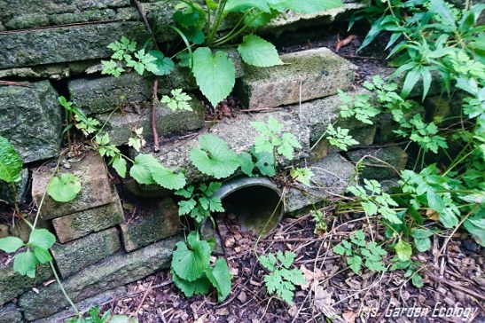In mijn netjes gemetselde muurtje heb ik uitsparingen en kieren overgelaten voor planten en dieren.