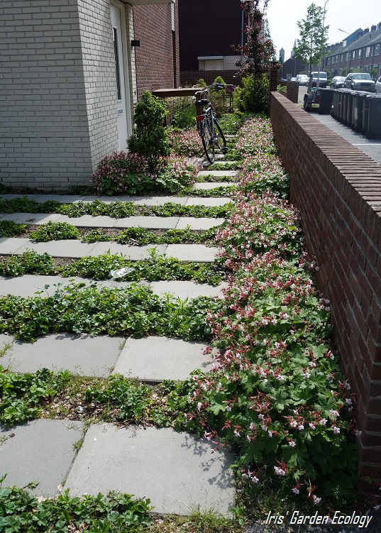 Leuk gebruik gemaakt van brede voegen in een voortuintje in Beverwijk.