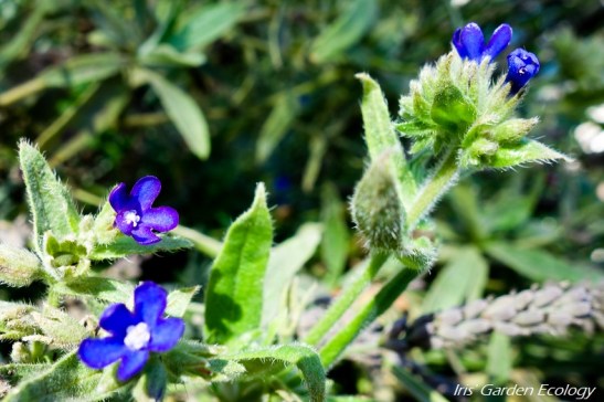 | De plant zelf: | Tweejarig of overblijvend; bij mij in de tuin keert deze dankbare kruidachtige plant in ieder geval jaarlijks terug. Hij bloeit vanaf de zomer tot ver na de eerste vorst en trekt de meeste hommels en bijen van alles in mijn tuin. De bladeren zijn stug behaard en viltig. De kleine felblauwe bloemen beginnen in clusters, maar naar verloop van het seizoen produceert de plant hele aren waarvan steeds het uiteinde bloeit. Groeit het beste op een wat drogere, zonnige, redelijk voedselarme plek. |