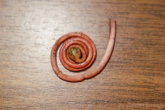 Momenteel wordt er hard gewerkt aan de uitbouw van de buren, maar gezien onze tuinen zich door middel van een nu afgebroken muur scheiden, moest een deel van mijn tuin eraan geloven. Mijn oude vuurdoorn, nog van de vorige bewoonster, evenals een kardinaalsmuts en een winterjasmiijn, zijn uitgegraven (door een hovenier, ik hoefde dat beulen met zulke wortels gelukkig niet zelf te doen). Ze staan wat zielig in grote bakken verspreid door de tuin, terwijl de aarde waar ze stonden volledig overhoop ligt. Natuurlijk gun ik mijn buren hun uitbouw, maar man, ik vind het wel zonde. Ergens onder die grond zitten nog allerlei kruidachtigen ondergedoken, die zich nu niet laten zien. Daarom ging ik er deze week maar eens spitten om te zien of er nog wat te redden viel. En zo stuitte ik op dit bijzondere detail.