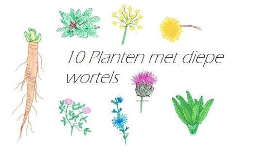 Oef! Ik besef me sinds kort dat ik nooit een lijstje met diepe wortelaars heb gemaakt. Dat terwijl ze zo nuttig zijn: ze pompen voedingsstoffen uit diep in de grond omhoog naar hun bladeren. Als ze afsterven of hun bladeren laten vallen (lees: als je de bladeren afknipt/afscheurt en op de grond tussen je planten gooit) dan komen die voedingsstoffen vrij voor de bodemorganismen en de andere planten. Vandaar dat ik ze mineralen-pompen noem, of grondstoffenpompen, maar ze heten ook wel dynamisch accumuleerders. Ze verbeteren ook nog eens de bodemstructuur.