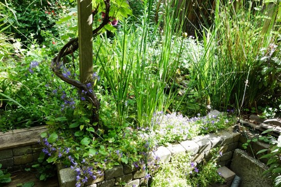 Helaas, we hebben haar niet meer gezien. Ik troostte me erin dat er sindsdien heel veel kleine padjes rond de tuin lopen, alleen zijn die niet zo dapper en zien we ze nooit. Tot nu! Sinds dit voorjaar verschijnt regelmatig een mannetje – denk ik, laten we zien of hij zijn huidige grootte behoudt – en we noemen hem Paracelsus, bijnaam Gert. De eerste keer dat ik hem tegenkwam zat hij boos tegenover mijn kat. Ik wist niet wat mijn kat ging doen (niks, blijkt, maar dat weet ik nu voor de volgende keer), dus pakte ik hem op om hem bij de vijver te zetten. In tegenstelling tot de andere padden probeerde hij niet meteen van mijn hand te rennen. Hij bleef gewoon rustig zitten en kwaakte (kun je het zo noemen, dat geluid?) boos naar me. Daarna hebben we hem op verschillende plekken in de tuin gespot: op het pad, in de zitkuil, op de rand van de verhoogde border (ook altijd een favoriet plekje van Archimedes). Hij heeft net zoveel lak aan ons als Archimedes had, doet ook aan annemaria koekoek én ziet er nog eens hetzelfde (donker bruin/grijs met wat spikkels) uit, behalve in grootte dan. Zou het een nakomeling van Archimedes zijn?