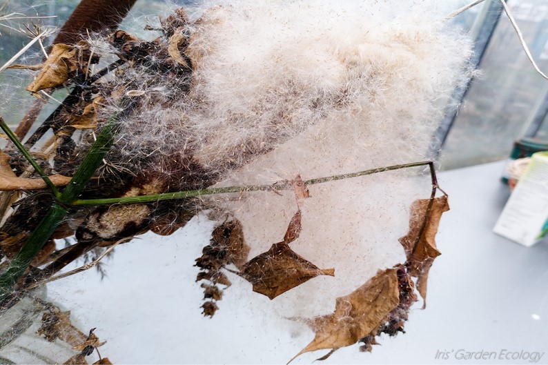 Ik liep de kas van PermacultuurCentrum Haarlem binnen. In het ‘lokaal’ waar ik van het najaar nog lesgaf staan de stoelen kriskras door elkaar en liggen er naar binnen gewaaide blaadjes op de tafels. Mijn cursus gaat dit voorjaar niet door; ik heb zelf de stekker eruit getrokken, want met alle gedoe van de corona was het voor mij op dit moment niet werkbaar, anders had het lokaal er nu heel anders bijgestaan. Ik kom alsnog langs om de cursistentuintjes bij te werken, wat natuurlijk begint met een kop thee binnen. Koffie, thee en andere drank staat klaar op een tafel langs de ramen. De vaas met gedroogde bloemen en takken, die afgelopen halfjaar de tafel sierde, staat er nog. De lisdodde is opengesprongen en een massa pluizige zaden waait dankzij de geopende deur in een wolk het lokaal in.