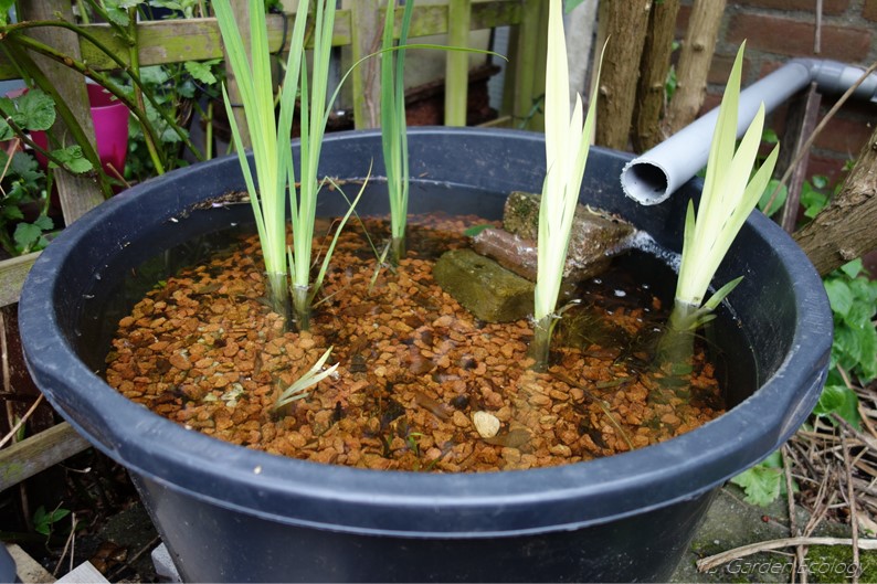 Vaste lezers zal het misschien opvallen dat de bakken van de plantfilters zijn veranderd. Dit voorjaar heeft mijn man de oude kapotte bak en het kleine babybadje dat we als tijdelijk plantfilter hadden vervangen door twee oude speciekuipen van de buurman. Ja, wij nemen allerlei oude troep in de buurt in