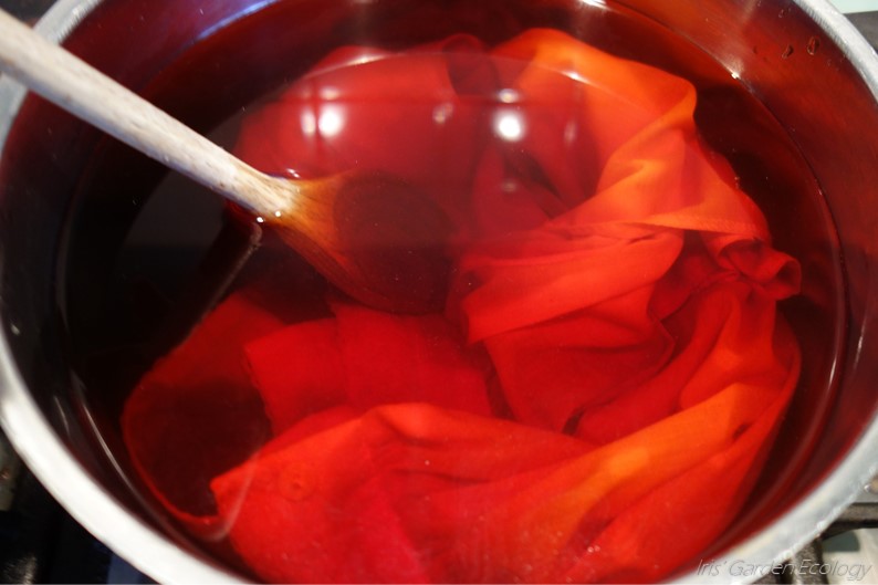 Welk deel je van een plant pakt maakt ook uit. Denk aan bloem, schil, vrucht, zaad of wortel. Je krijgt een andere kleur als je bijvoorbeeld alleen met avocadopitten werkt of alleen met de schillen. Kwestie van testen. Ik koos er uiteindelijk voor om simpelweg alles bij elkaar te doen.