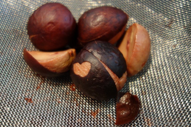 Mocht je nog niet helemaal geloven dat bovenstaande kleur uit avocado’s kan komen, kijk dan eens naar de pitten die ik na het koken uit het water viste: