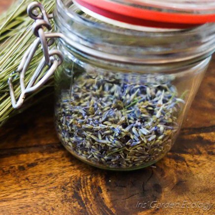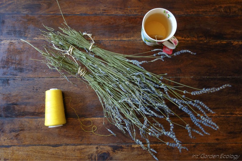 Ik strooi graag wat lavendelbloempjes in de thee. Niet te veel, anders overheersen ze: één klein topje is precies genoeg. Ik heb ze ook wel eens in alcohol laten staan voor een tinctuur, die zou moeten helpen met slapen (niet dat ik daarvan iets merkte). Of ik combineer ze met suiker en kokosolie voor een scrub die ik cadeau doe, of met rijst in een in de magnetron op te warmen geurzakje. Gebruiksmogelijkheden genoeg, zou je zeggen. Maar wat te doen met al die steeltjes? Mijn tuin is niet groot genoeg voor zoveel mulch, hoe fijn lavendel daarvoor ook is.