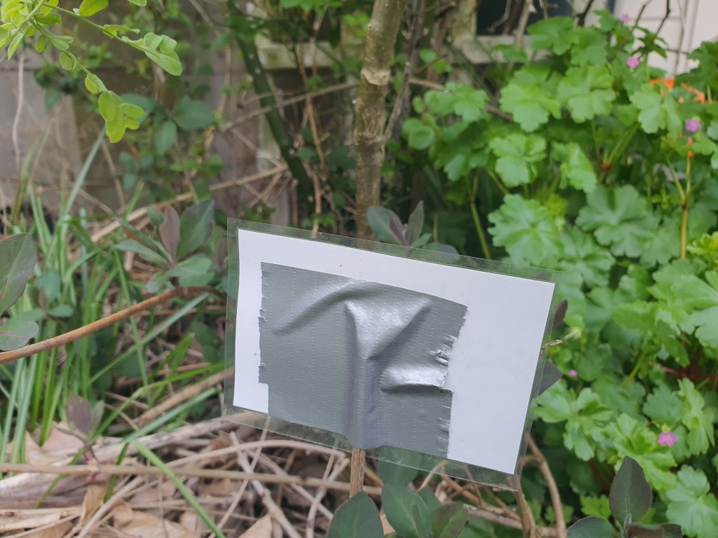 Niet de meest milieuvriendelijke oplossing dankzij het plastic, dat wel, maar na meerdere dingen te hebben geprobeerd ben ik erachter dat deze kaartjes veruit het langste mooi blijven en dat ik mijn informatie erop goed kwijt kan. Mijn oudste kaartjes staan al meerdere jaren en gebruik ik steeds weer. Ze hebben soms (eens per 1-1,5 jaar ongeveer) een nieuw stukje duct tape nodig en soms een nieuw stokje. Een alternatief op het duct tape zijn (houten) knijpers, dat werkt ook goed als je ze aan de zijkant vastmaakt. Dan krijg je een soort vlaggetje. Het belangrijkste voor mij was dat ik voorbijgangers kan informeren en hopelijk anders naar ‘onkruiden’ kan laten kijken, dus dat was het gebruik van plastic het wat mij betreft waard. Maar als iemand andere suggesties heeft hoor ik ze graag! En volgens mij is mijn missie geslaagd: ik krijg in ieder geval erg leuke reacties op van voorbijgangers, zoals ouders met kinderen die alle bordjes afgaan!