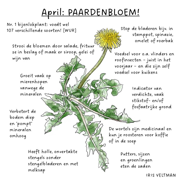 De paardenbloem is, zeker in het voorjaar, zo waardevol voor insecten. Ik laat ze ook staan en geniet er altijd enorm van. De bladeren kun je eten, maar ze zijn inderdaad best zuur.
